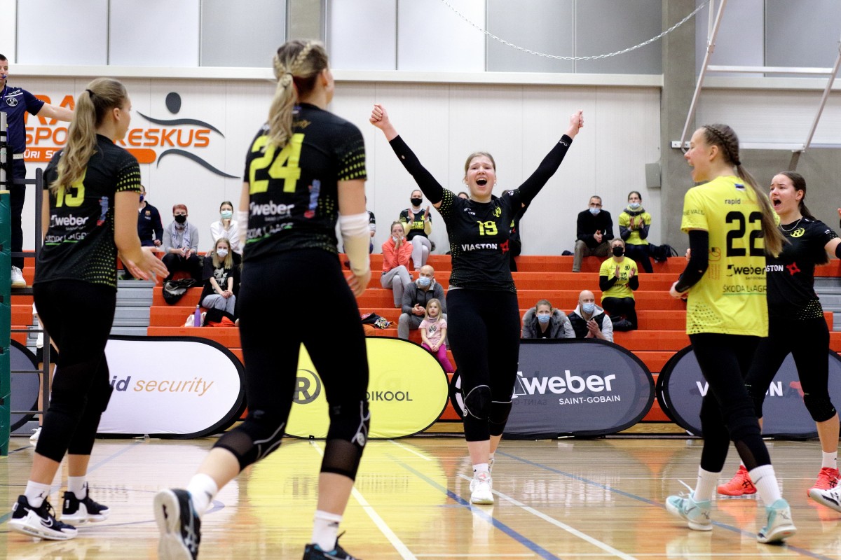 Pildil 2: Rae Huvialakooli võrkpallitüdrukud rõõmujoovastuses