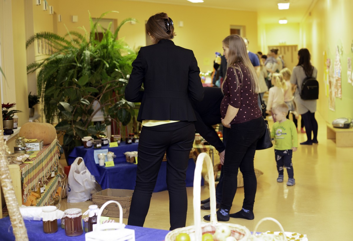 Põnevust ja tegutsemist jätkus igasse lasteaia tuppa. Eriti ilusad tüdrukud jagasid peredele nii orienteerumiskaarte kui häid soovitusi, kuhu võiks suunduda. Igas toas toimetati – kes ei tahaks koos õpetajatega või emme-issiga ise meisterdada helkurit, vurri, jõulu- või kaelaehet, abiks meie toredad praktikandid Tallinna Ülikoolist. Pered ja meie enda personal olid kohvikusse valmistanud head-paremat, kohvikuperenaised teenindasid sõbralikult ja vilunult. Üks hea haldjas hoolitses selle eest, et kohvikus ja moosikeldris oleksid oma Taaramäe aia õunad. Konsumi poe pitsakohvik pani oma õla alla. Moosikeldri ja lasteriiete müüjad andsid endast parima. Õnneloos, näomaaling ja õhupall tegid loomulikult iga lapse rõõmsaks. Tantsiti Tiigriga ja vaadati professionaalide võistlustantsu. Osavustoa instruktorid jõudsid juhendamise kõrvalt isegi statistikat teha. Fotograafil oli tegemist, et seda kõike jäädvustada. Laat õnnestus!