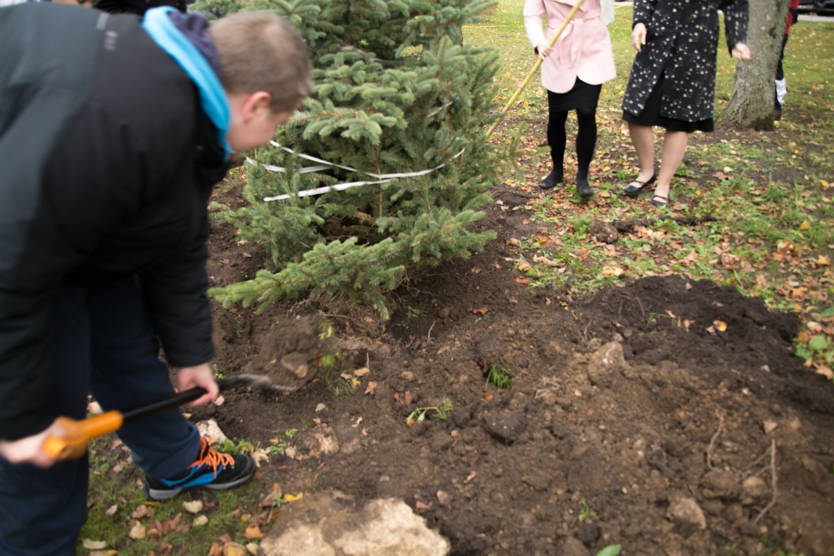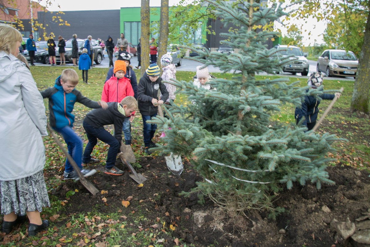 Vaida koolipere pani õpetajatepäeval kasvama 10 kuuske, millest iga aastaga saab üha tugevam ja ilusam kaarjas hekk maja ees.
