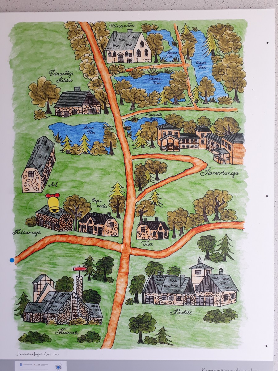 Kurna külast pärit Ingrit Kislenko joonistus annab hea ülevaate mõisa pargi planeeringust. Kurna küla ajalugu ja inimesi tutvustava püsinäitusega saab tutvuda jalakäijate tunnelis neljarajalise maantee all.