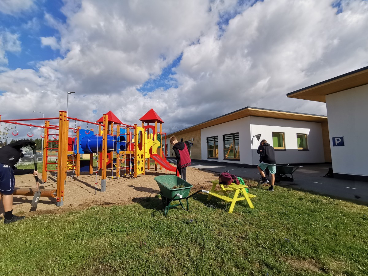 Oli meilgi selle erilise aasta kesksuvel, juulikuus (06.–10.07.2020) võimalus oma lasteaias võõrustada malevlasi. See tore ja vahva noorte seltskond toimetas üliagaralt lasteaia kahe maja õuealal. Nende töökate käte all rohiti lokkavast umbrohust hekkide alused ja muru, korrastati liivaalad, mänguväljakud ja taimede klumbid. Ühel kenal päeval ei katkenud nende töö tugevas vihmasajuski, nagu lauluski – leidsid ka noored selles ehk oma päikesekiire või erilise hetke ….. Mis neid seda tööd tegema ajendas? Vestlesin kahe noore inimesega ja esitasin neile sama küsimuse: „Miks malev?“