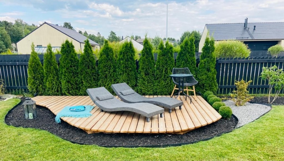 Läbimõeldult on ehitatud ka terrass, kus saab mõnusalt aega veeta nii soojal suveõhtul kui ka miinuskraadidega. Talvel aitavad hubase meeleolu loomisele kaasa soojuskiirgur ja läbimõeldud valgustus. Selleks, et ka suurem seltskond end lahedalt tunneks, lasti terrass suuremaks ehitada ja algsed nn laiatarbe terrassilauad asendati jalasõbralikuma termotöödeldud puidust valmistatud laudadega.