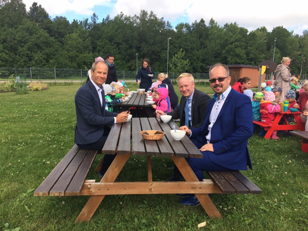 Pärast Järveküla koolis toimunud kohtumist suunduti Võsukese lasteaeda, kus ministrile pakuti kohapeal valminud välilõunat.