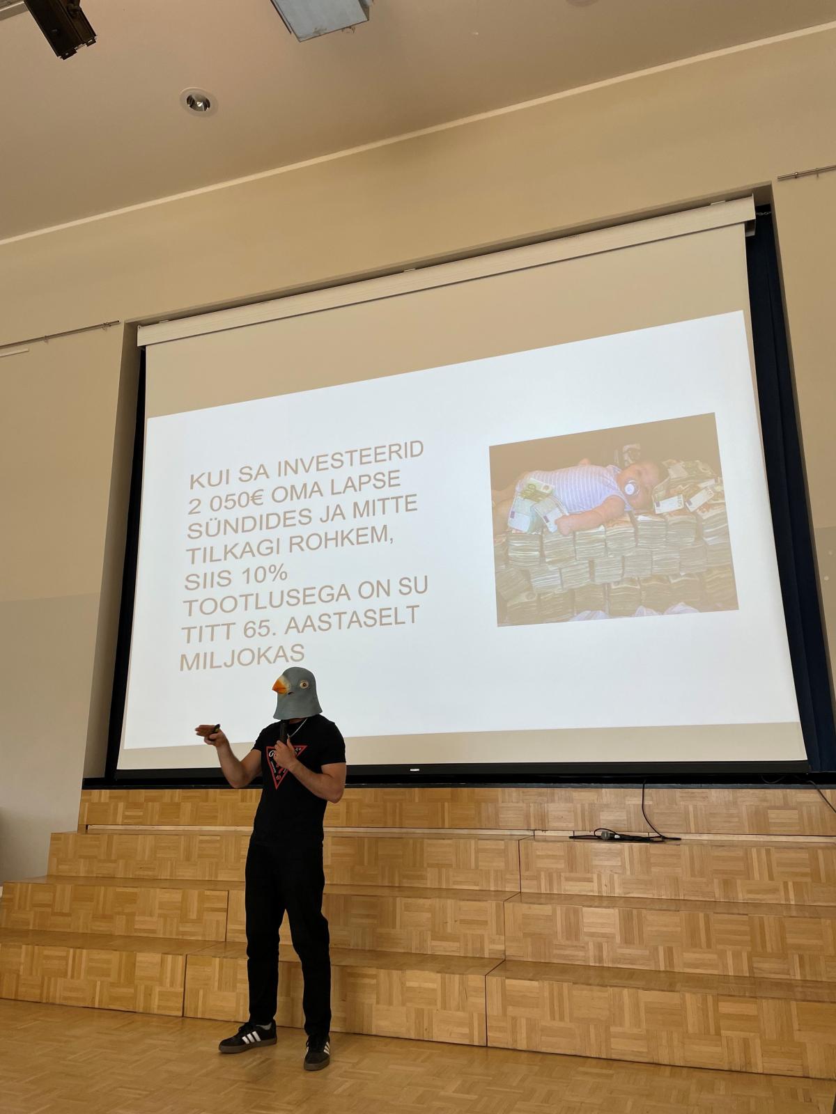 Viimasena astus lavale mees, kelle nime taga pole nägu, vaid mask, ja kelle sulest on sündinud Eesti kõige ausam ja naljakam investeerimisteemaline blogi. Rahakratt pani publiku kordamööda nii tõsiselt mõtlema kui ka oma robustsete ja vaimukate näidetega itsitama. Oli väga äge näha, kuidas kõik päeva jooksul läbi võetud teemad läksid noortele korda – mõeldi kaasa ja pärast iga esinemist oli näha küsimuste küsijate kätemerd.