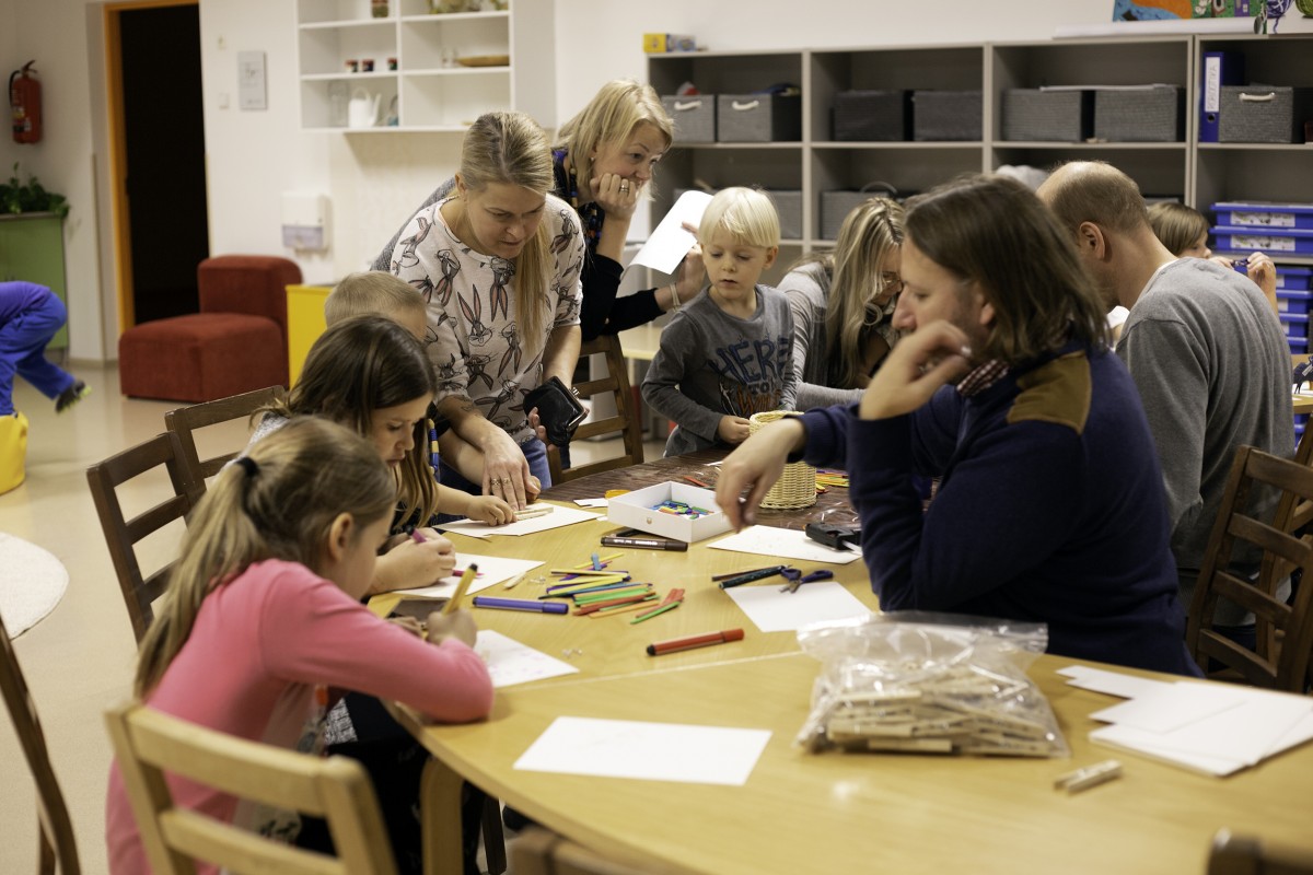 Põnevust ja tegutsemist jätkus igasse lasteaia tuppa. Eriti ilusad tüdrukud jagasid peredele nii orienteerumiskaarte kui häid soovitusi, kuhu võiks suunduda. Igas toas toimetati – kes ei tahaks koos õpetajatega või emme-issiga ise meisterdada helkurit, vurri, jõulu- või kaelaehet, abiks meie toredad praktikandid Tallinna Ülikoolist. Pered ja meie enda personal olid kohvikusse valmistanud head-paremat, kohvikuperenaised teenindasid sõbralikult ja vilunult. Üks hea haldjas hoolitses selle eest, et kohvikus ja moosikeldris oleksid oma Taaramäe aia õunad. Konsumi poe pitsakohvik pani oma õla alla. Moosikeldri ja lasteriiete müüjad andsid endast parima. Õnneloos, näomaaling ja õhupall tegid loomulikult iga lapse rõõmsaks. Tantsiti Tiigriga ja vaadati professionaalide võistlustantsu. Osavustoa instruktorid jõudsid juhendamise kõrvalt isegi statistikat teha. Fotograafil oli tegemist, et seda kõike jäädvustada. Laat õnnestus!