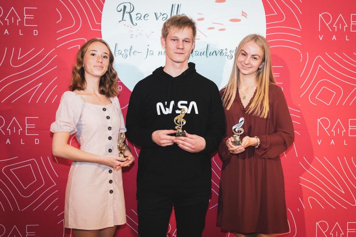 Küll Oviiri õpilased Rae valla lauluvõistlusel esinemas. Vasakult Berit Hallik, Vladimir Todurov, Pilleriin Tõnisson. Foto. Ott Kattel
