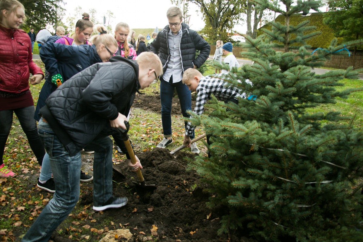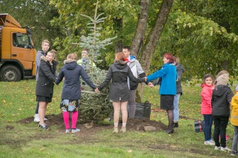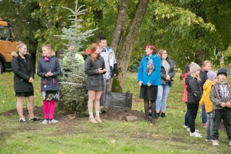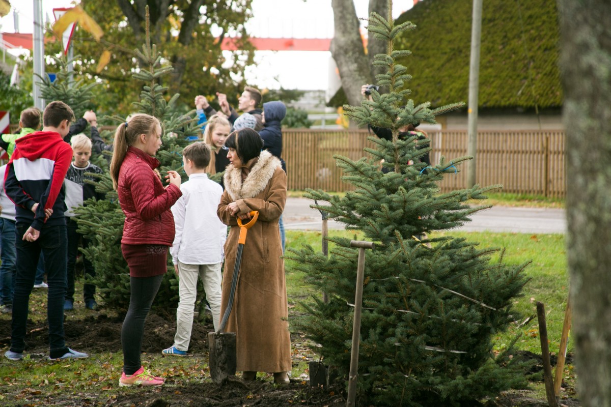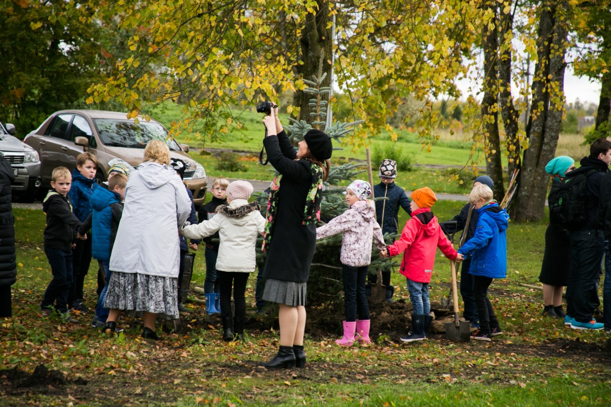 Vaida koolipere pani õpetajatepäeval kasvama 10 kuuske, millest iga aastaga saab üha tugevam ja ilusam kaarjas hekk maja ees.