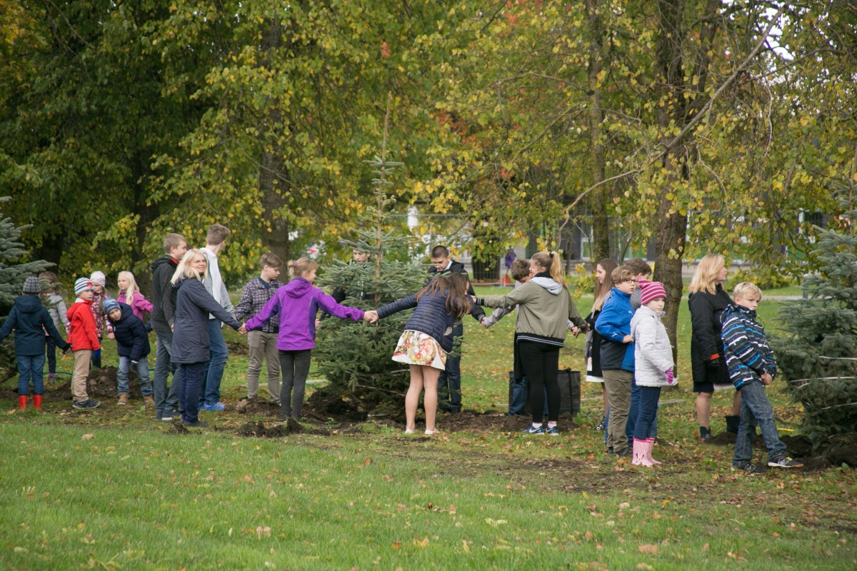 Ühiselt mahaistutatud puud saadi kingitusena Rae vallavalitsuselt ning koolidirektori Piret Halliku sõnul istutati need maha nii, et suureks kasvades võimaldavad kuused kasvada ka teistel suurtel läheduses asuvatel lehtpuudel. Halliku sõnul kasvas uute puude alal kunagi vana kuusehekk, kus oli sees palju haigeid puid ning mis liiga väikse istutusvahe tõttu mõjutasid lehtpuude arengut.