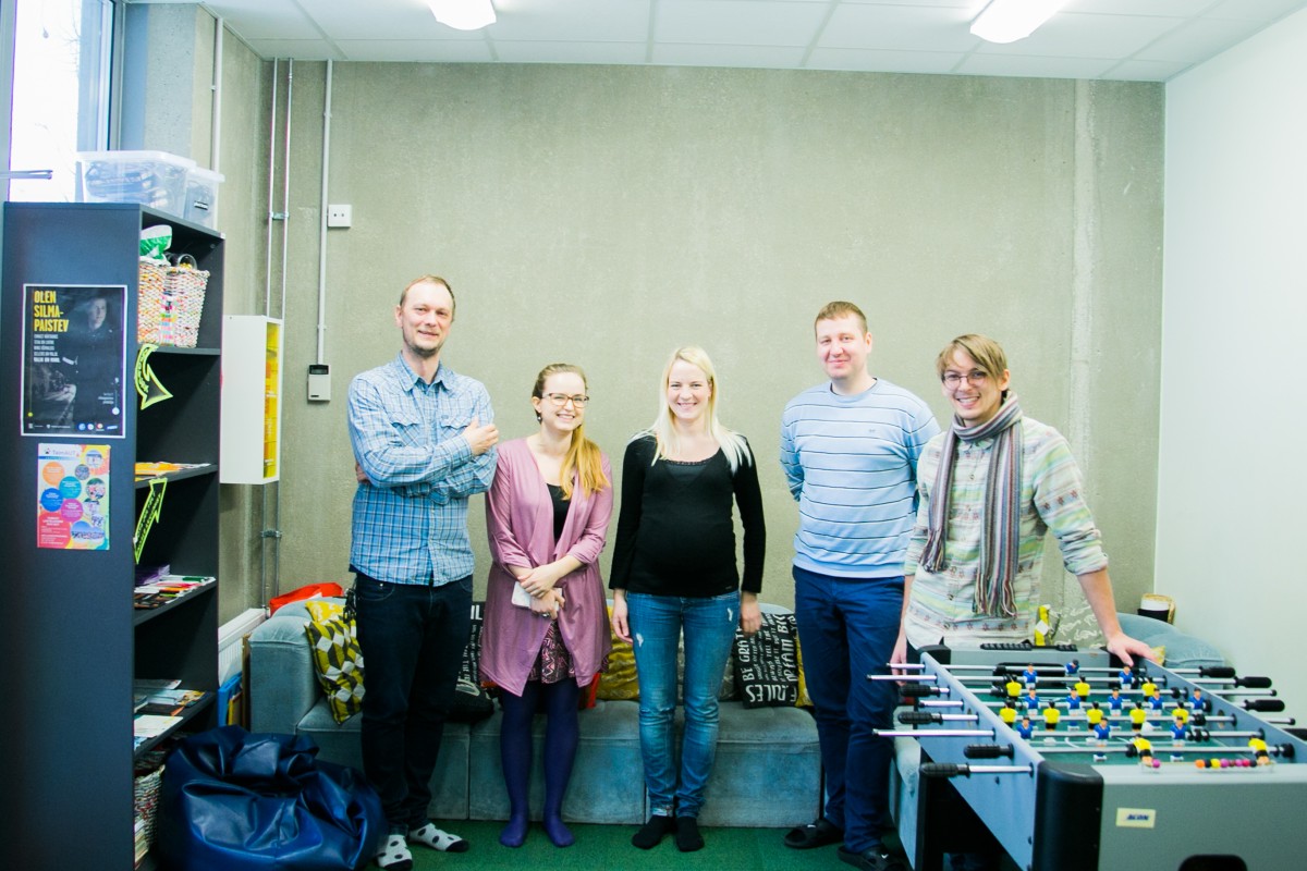 Energiast pakatav meeskond: Rae Noortekeskuse värskelt ametisse asunud juht (vasakult) Jan Pillav koos Liise Saluga Lagedi noortekeskusest, Agne Kokka ja Indrek Paasiga Jüri noortekeskusest ning Brey Velberkiga Järveküla piirkonna noortekeskusest. Meeskonnast on puudu Merle Trestip Vaida noortekeskusest.