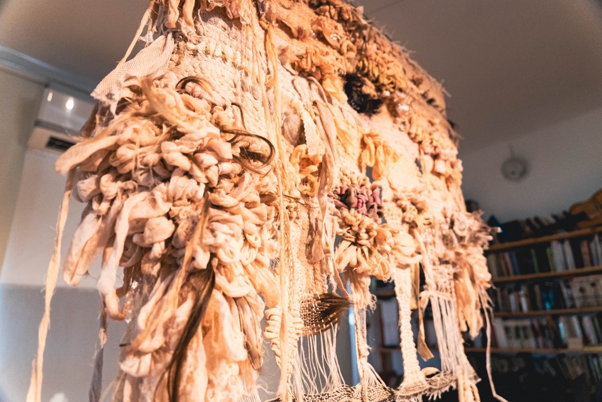 Ja eks see kunst mis me teeme ja kus me mõtetes elame ei erine liialt üksteisest. Otsidest sellist aeglast rituaalset kulgu, siis pöördumine sellise traditsioonilise ja meditatiivse käsitöölise praktika poole nagu kangastelgedel kudumine, tundub väga loomulik samm. Abivahend mille läbi siis ise enda sisemaailma ja mõtteid läbi töötada. Läbi selle iidse praktika proovin mõtestada mida tähendab eksisteerida inimesena ning omada keha