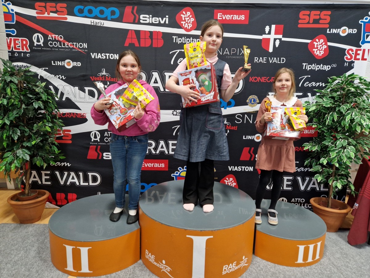 Nooremate tüdrukute esikolmik (vasakult): Kertu Narusk, Marta Velgre, Mia Brigitta Raudsik. Foto: Indrek Raig
