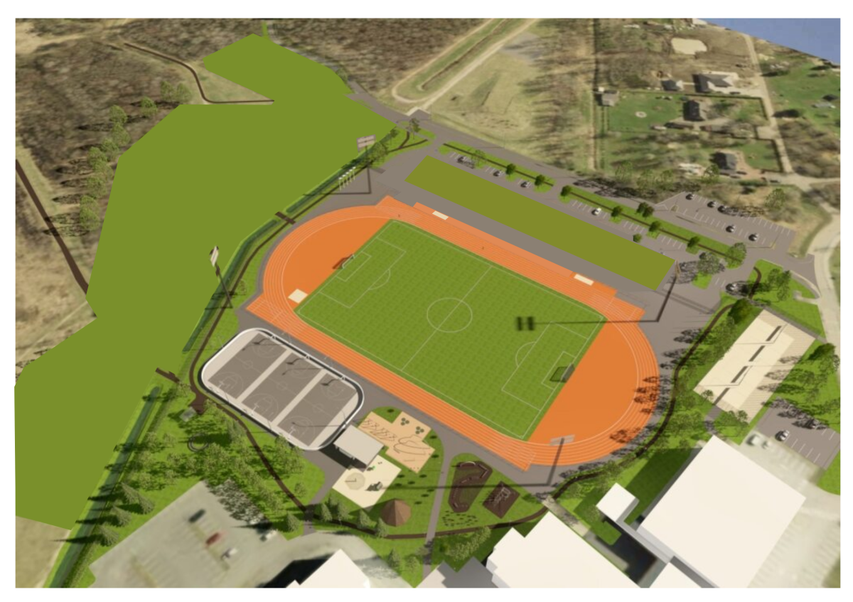 * Staadionist põhja poole on kavandatud treeningala, mänguala, kiikede ala, katusega väliõppeklass ning korvpalliväljakud, mille peale on talveks võimalik rajada jääväljak.