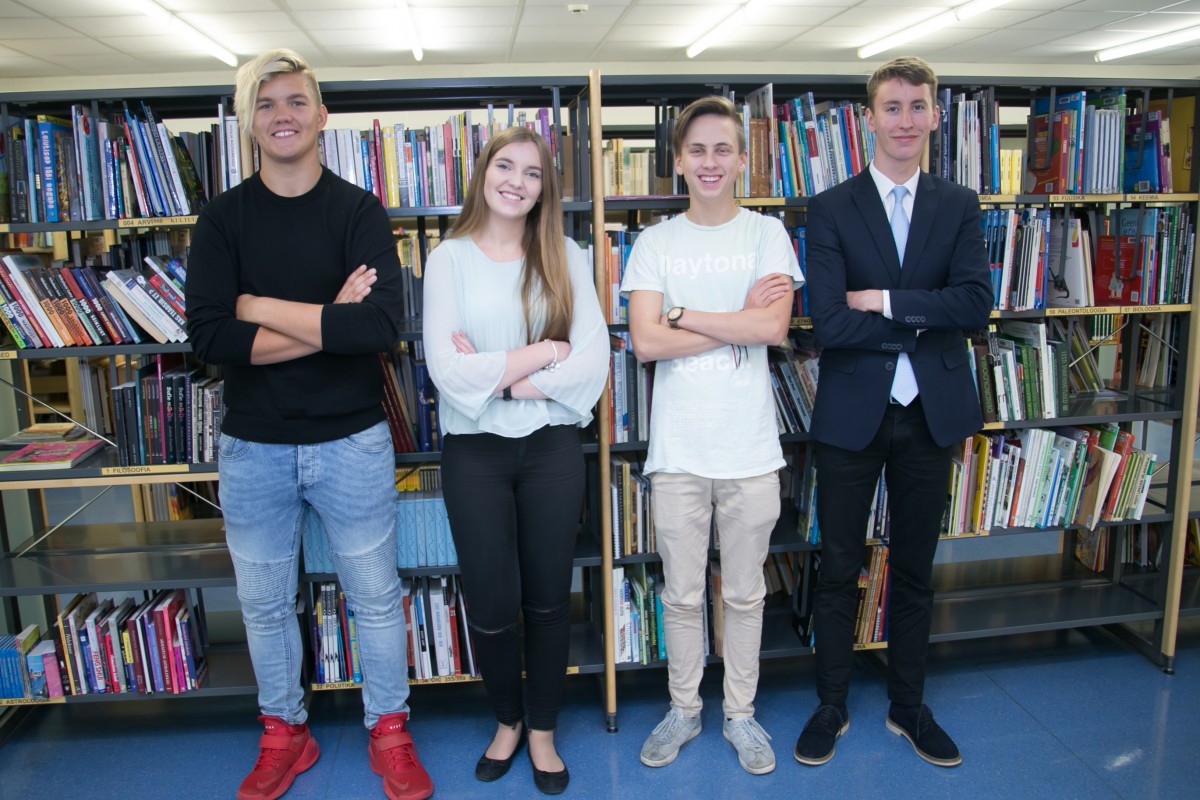 Georg Sikka (15), Carmen Lepik (17), Joosep Tiitus (16) ja Frederik Tihhonov (18) Jüri raamatukogus