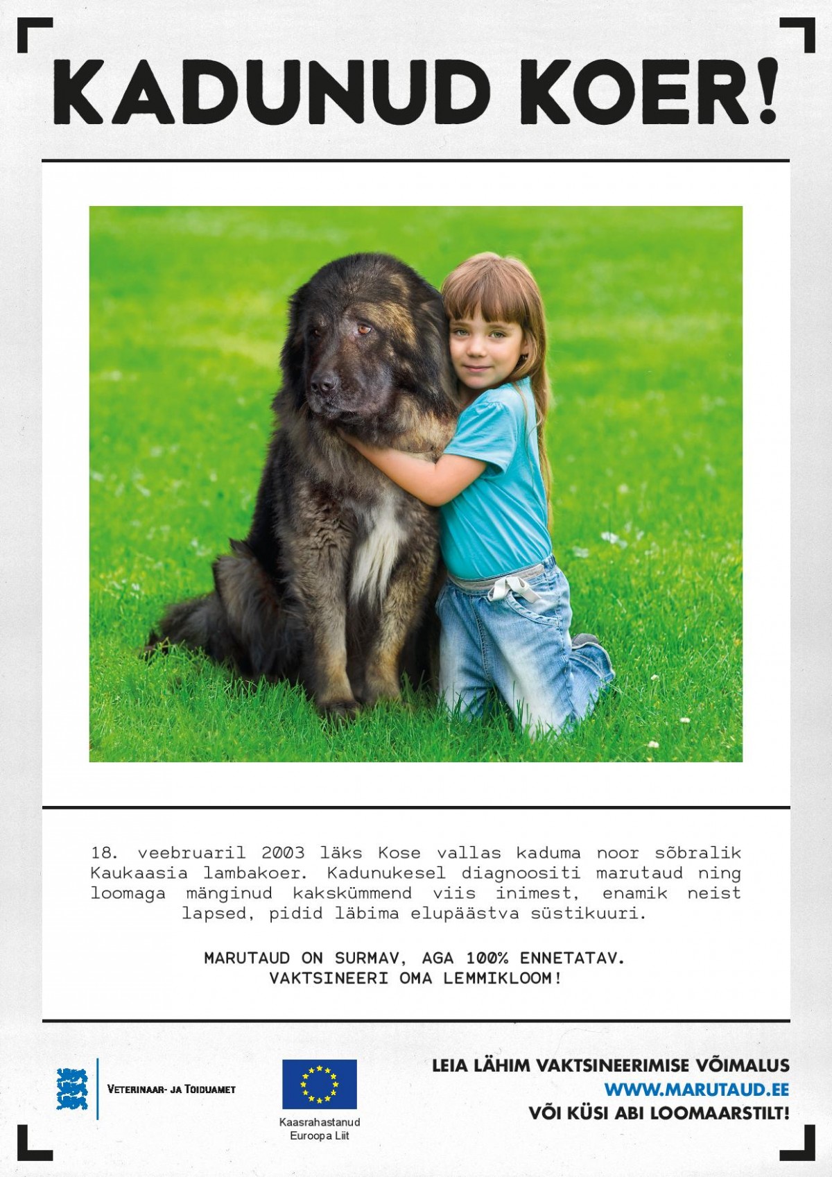 Selleks, et sina ei peaks kunagi olema samas olukorras nagu plakatil kirjeldatud koera omanik, vaktsineeri oma lemmikloom!