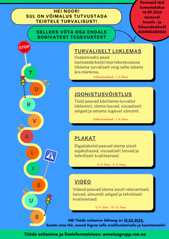 Rae valla Noortevaldkonna ennetusgrupi esimene kampaania „Turvaline liiklemine“ kutsub kõiki lapsi ja noori osalema turvalisusele keskenduvates tegevustes. Kampaania sai alguse 2. mail ja jagune...