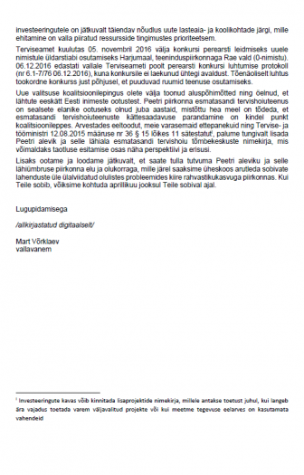 Rae Vallavalitsus otsib üürile võtmiseks Peetri alevikus või Järvekülas ruume perearstikeskuse rajamiseks. Tingimused ja nõuded ruumidele: ...